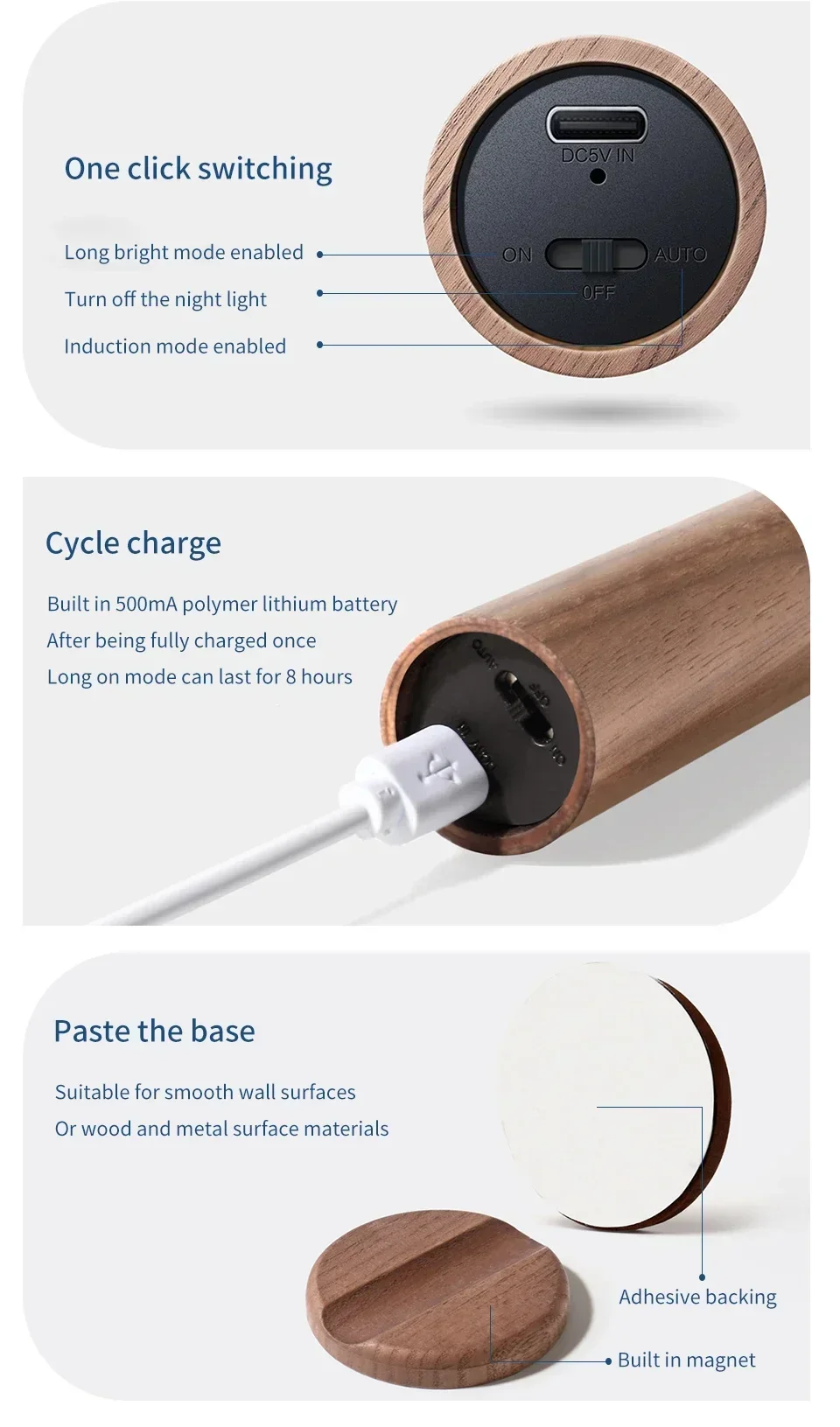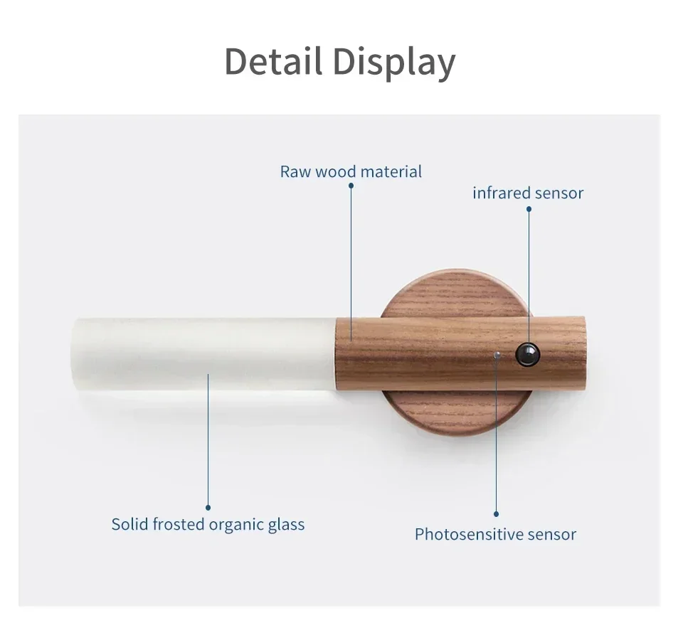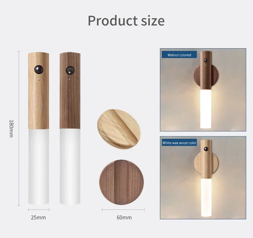 • Features: Rechargeable, motion sensor,Wood Grain Design