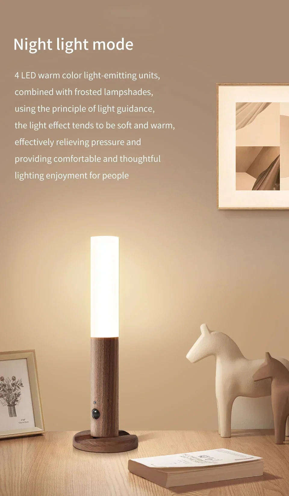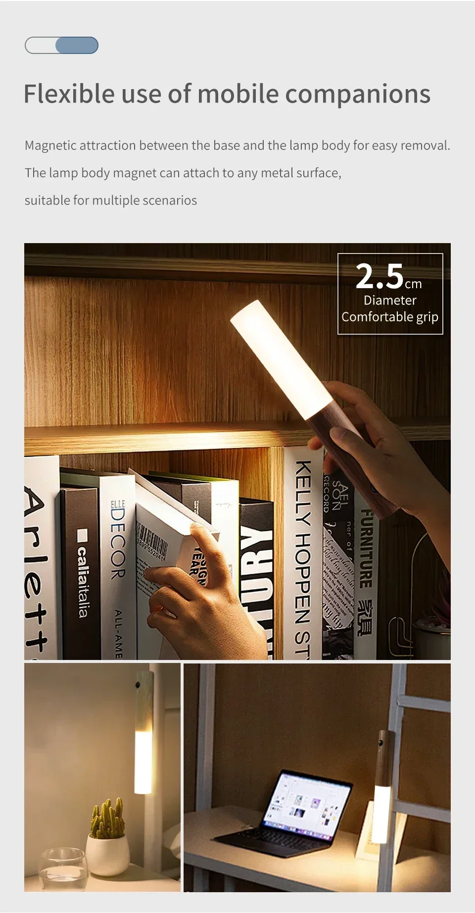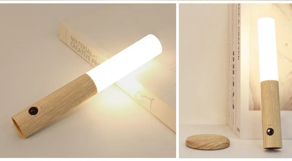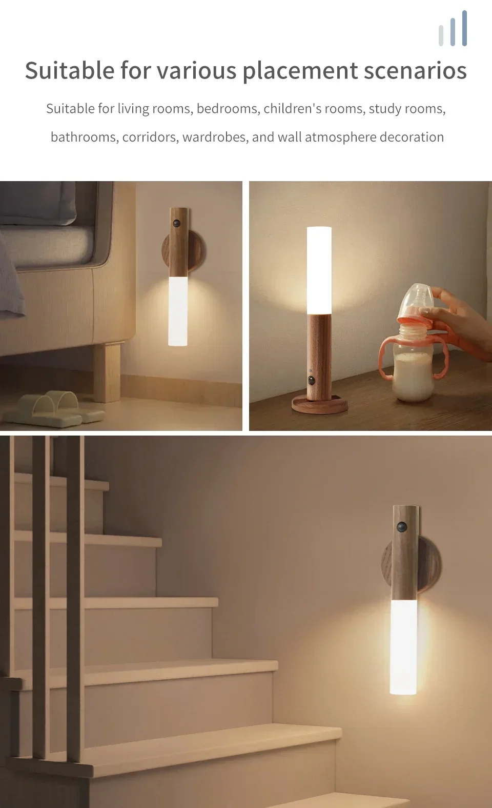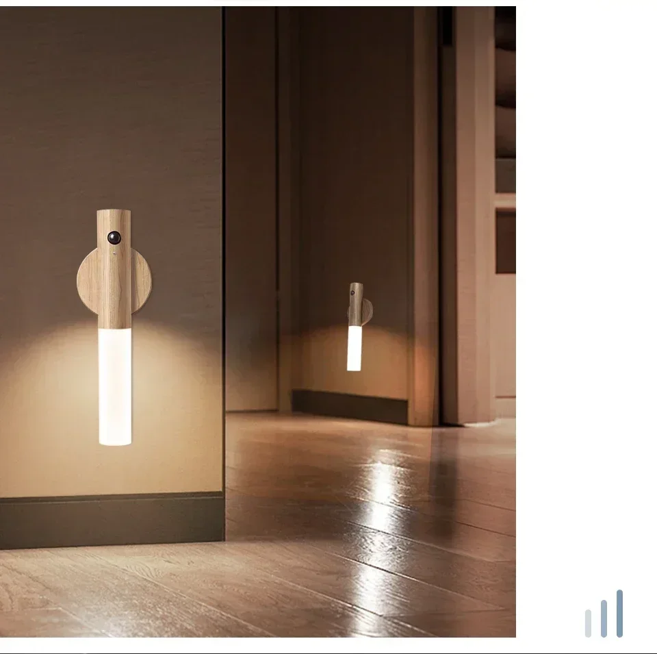 Wood-Style Rechargeable LED Wall Light with Motion Sensor Ideal Portable Plastic Lantern for Bedroom Bedside Stairs and Hallway
